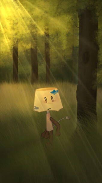 no background/colored background + character=